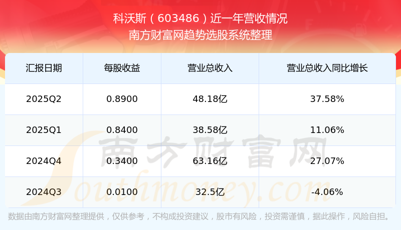 科沃斯2025年第二季度显示,公司主营收入48.18亿元,同比37.58%;归母净利润5.05亿元,同比62.19%;扣非净利润5.04亿元,同比86.25%。