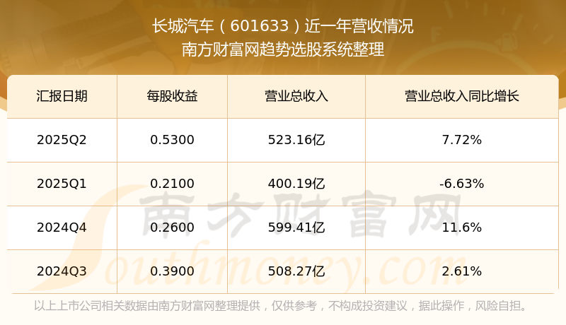 2025年第二季度,长城汽车营收同比7.72%,净利润同比19.47%。