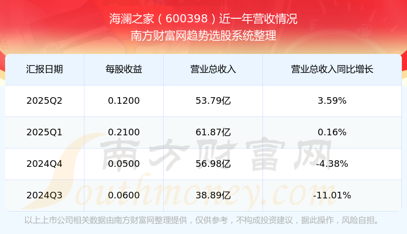 海澜之家2025年第二季度显示,公司主营收入53.79亿元,同比3.59%;归母净利润6.45亿元,同比-13.92%;扣非净利润6.41亿元,同比1.44%。