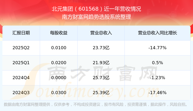 北元集团发布2025年第二季度财报。实现总营收23.73亿元,同比增长-14.77%;扣非净利润同比增长-60.7%至4579.58万元。