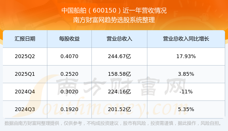 财报显示,2025年第二季度中国船舶营收244.67亿元,同比增长17.93%,净利润18.19亿元,同比增长79.88%。