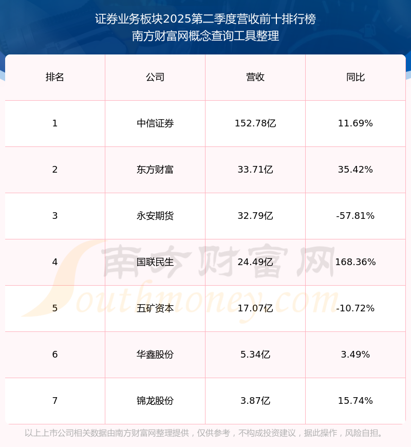 按照开云手机web版登录入口概念查询工具统计,该股所属板块为证券业务板块,该板块共有7只股票,国金证券2025第二季度营收在该板块中排名为第7名,该板块2025第二季度营收排名前十的股票如下表: