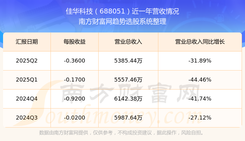 佳华科技股票近一年营收情况如下表: