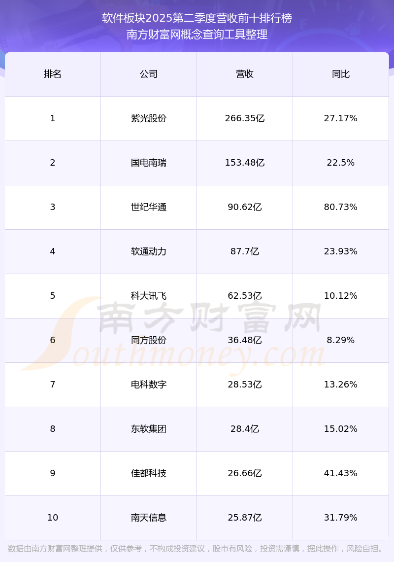 按照开云手机web版登录入口概念查询工具统计,该股所属板块为软件板块,该板块共有246只股票,佳华科技2025第二季度营收在该板块中排名为第221名,该板块2025第二季度营收排名前十的股票如下表: