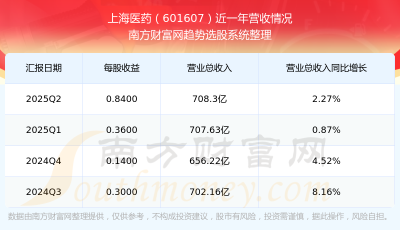上海医药股票近一年营收情况如下表: