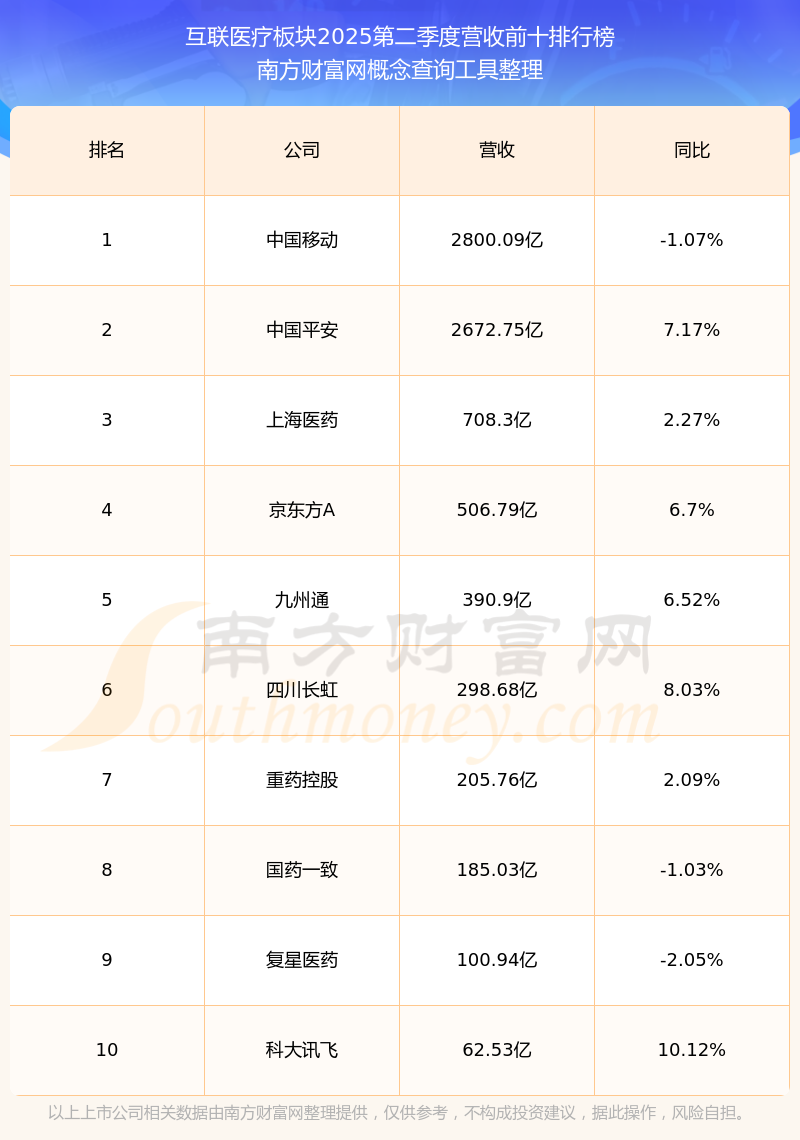 按照开云手机web版登录入口概念查询工具统计,该股所属板块为互联医疗板块,该板块共有127只股票,上海医药2025第二季度营收在该板块中排名为第3名,该板块2025第二季度营收排名前十的股票如下表: