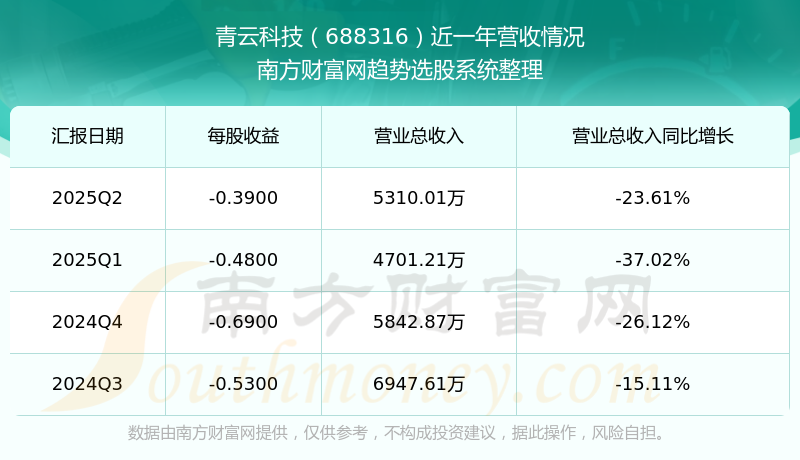 青云科技股票近一年营收情况如下表: