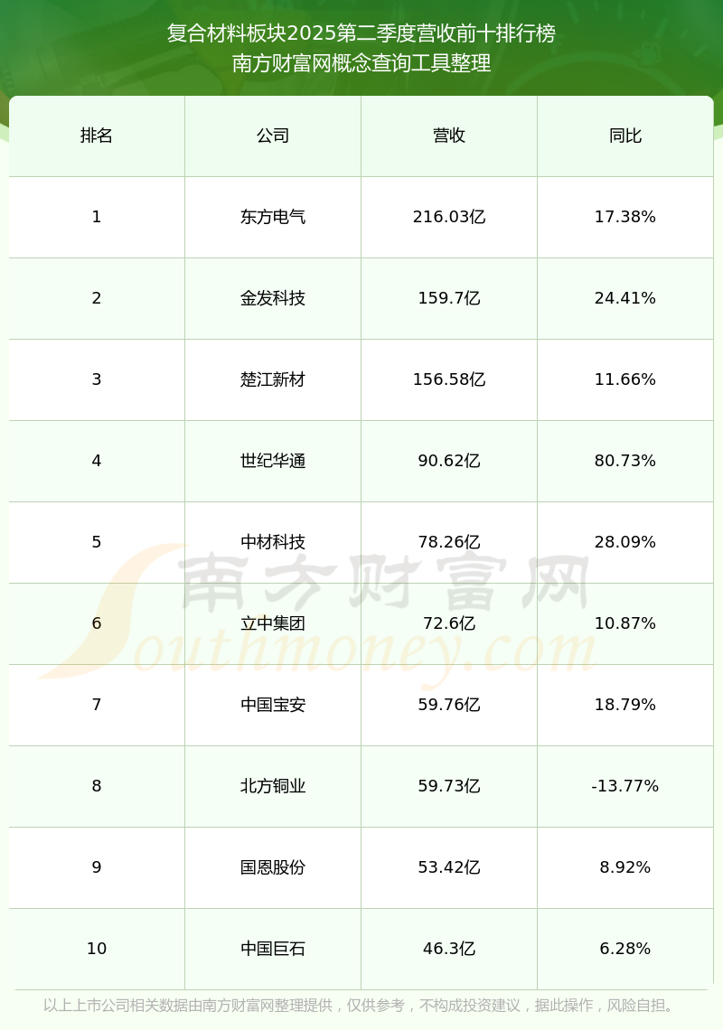 按照开云手机web版登录入口概念查询工具统计,该股所属板块为复合材料板块,该板块共有65只股票,同益中2025第二季度营收在该板块中排名为第51名,该板块2025第二季度营收排名前十的股票如下表: