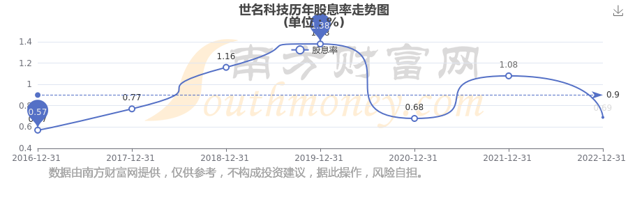 近年世名科技年度股息率走势如下图: