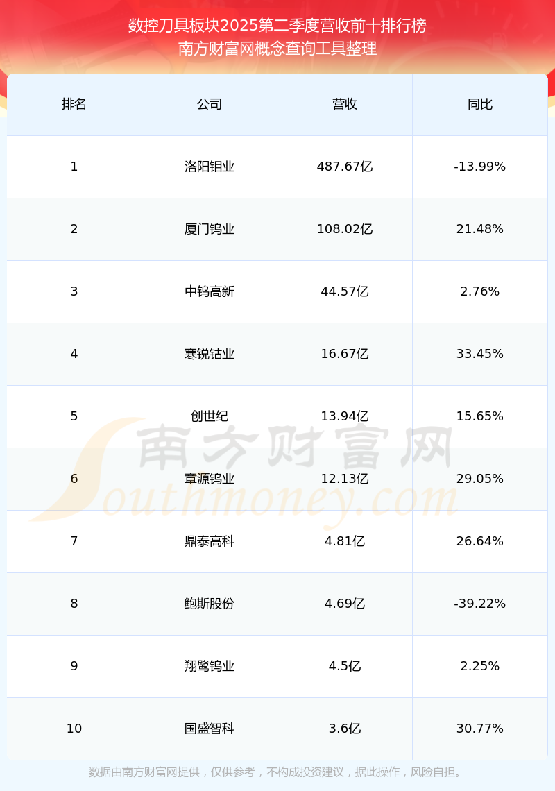 按照开云手机web版登录入口概念查询工具统计,该股所属板块为数控刀具板块,该板块共有15只股票,欧科亿2025第二季度营收在该板块中排名为第11名,该板块2025第二季度营收排名前十的股票如下表: