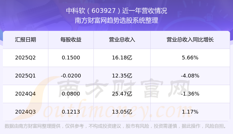 于2025年第二季度,中科软披露了其业绩表现,其中主营业务收入16.18亿元,相较于去年同期5.66%。此外,公司归属于母公司的净利润为1.23亿元,同比增长了-24.42%。在扣除所有非经常性损益后,净利润1.17亿元,同比增长-27.79%。