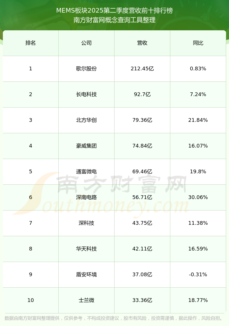 按照开云手机web版登录入口概念查询工具统计,该股所属板块为MEMS板块,该板块共有91只股票,芯动联科2025第二季度营收在该板块中排名为第75名,该板块2025第二季度营收排名前十的股票如下表: