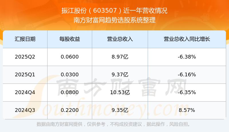 振江股份股票近一年营收情况如下表: