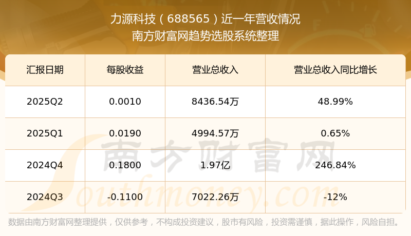2025年第二季度,力源科技营收同比48.99%,净利润同比99.05%。