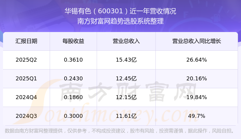 华锡有色股票近一年营收情况如下表: