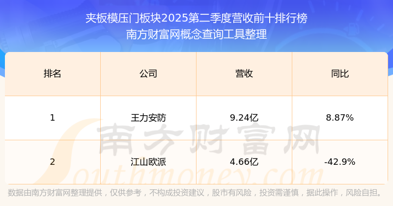 按照开云手机web版登录入口概念查询工具统计,该股所属板块为夹板模压门板块,该板块共有2只股票,江山欧派2025第二季度营收在该板块中排名为第2名,该板块2025第二季度营收排名前十的股票如下表: