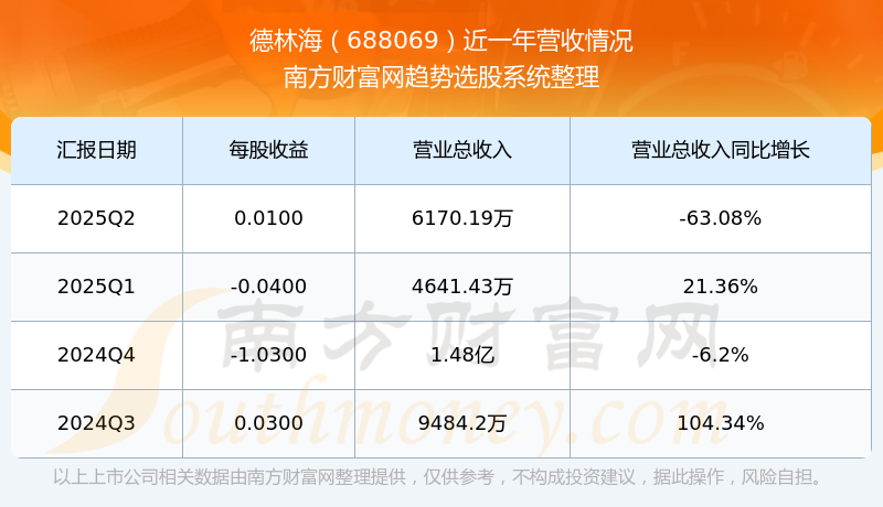 德林海(688069)披露2025年第二季度报告,报告期实现营收6170.19万元,同比-63.08%;归母净利润160.73万元,同比-94.19%;扣非净利润-491.47万元,同比-120.12%。