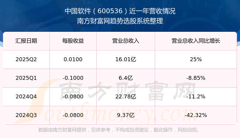 在2025年第二季度,中国软件的业绩表现,主营业务收入达到16.01亿元,实现了25%的同比增长率。同时,公司归母净利润录得609.87万元,同比增长103.77%。