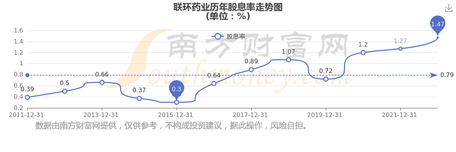 近年联环药业年度股息率走势如下图: