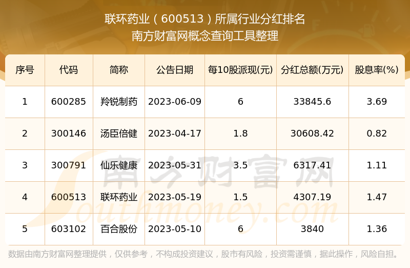 二、联环药业600513行业分红排名