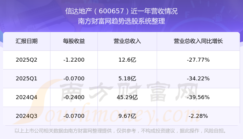 信达地产股票近一年营收情况如下表: