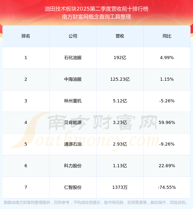 按照开云手机web版登录入口概念查询工具统计,该股所属板块为油田技术板块,该板块共有7只股票,中海油服2025第二季度营收在该板块中排名为第2名,该板块2025第二季度营收排名前十的股票如下表: