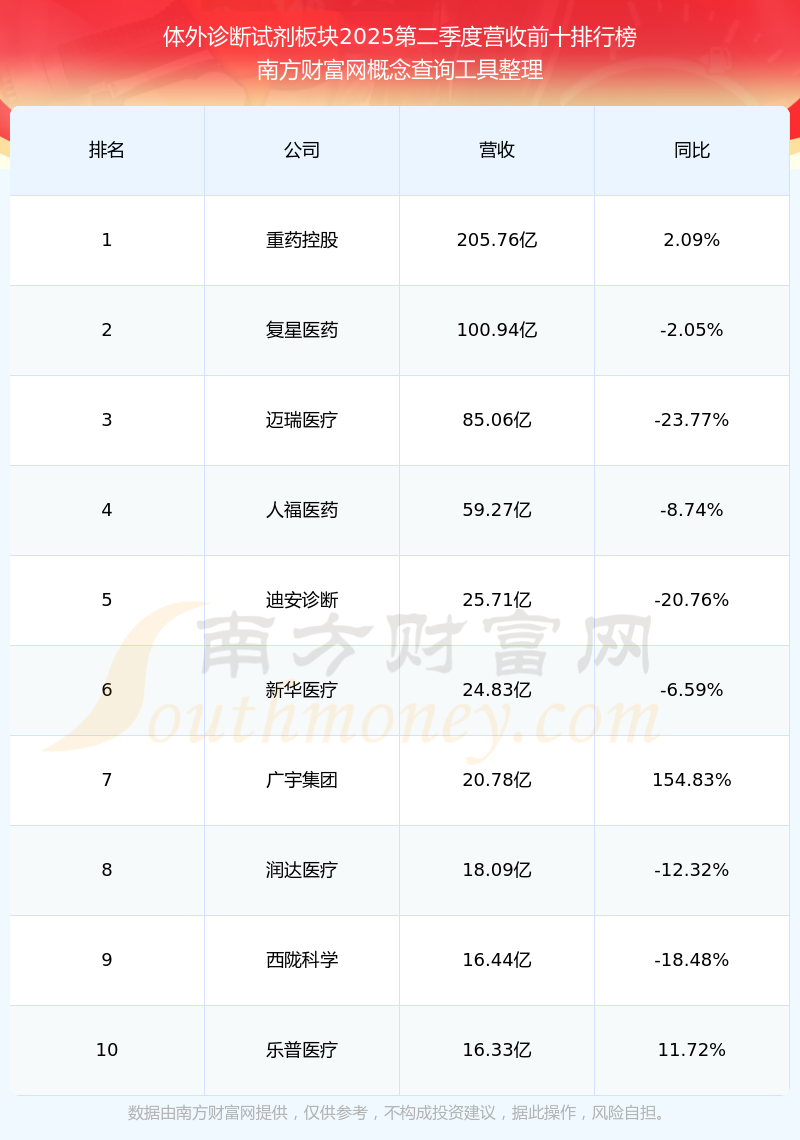 按照开云手机web版登录入口概念查询工具统计,该股所属板块为体外诊断试剂板块,该板块共有63只股票,奥泰生物2025第二季度营收在该板块中排名为第37名,该板块2025第二季度营收排名前十的股票如下表: