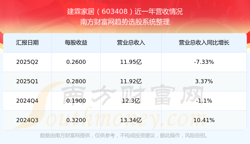 建霖家居股票近一年营收情况如下表: