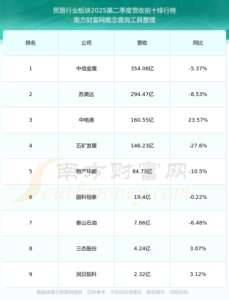 按照开云手机web版登录入口概念查询工具统计,该股所属板块为贸易行业板块,该板块共有9只股票,厦门国贸2025第二季度营收在该板块中排名为第9名,该板块2025第二季度营收排名前十的股票如下表:
