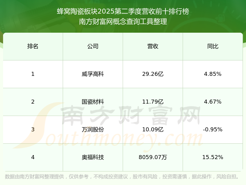 按照开云手机web版登录入口概念查询工具统计,该股所属板块为蜂窝陶瓷板块,该板块共有4只股票,奥福科技2025第二季度营收在该板块中排名为第4名,该板块2025第二季度营收排名前十的股票如下表: