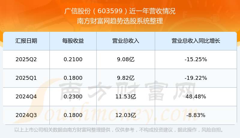 广信股份2025年第二季度财报显示,公司主营收入9.08亿元,同比-15.25%;归母净利润1.9亿元,同比1.38%;扣非净利润1.63亿元,同比4.07%。