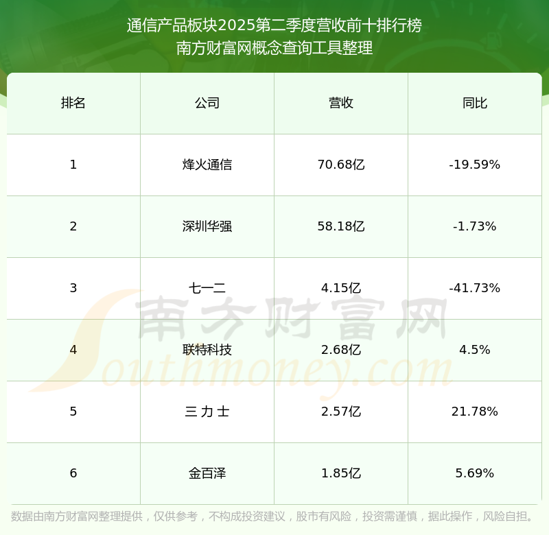 按照开云手机web版登录入口概念查询工具统计,该股所属板块为通信产品板块,该板块共有6只股票,七一二2025第二季度营收在该板块中排名为第3名,该板块2025第二季度营收排名前十的股票如下表: