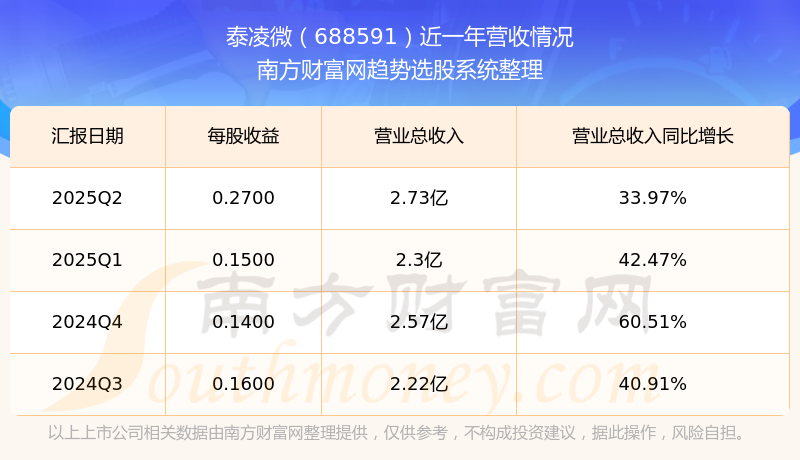 泰凌微2025年第二季度财报显示,公司主营收入2.73亿元,同比33.97%;归母净利润6536.41万元,同比108.23%;扣非净利润5896.43万元,同比90.45%;
