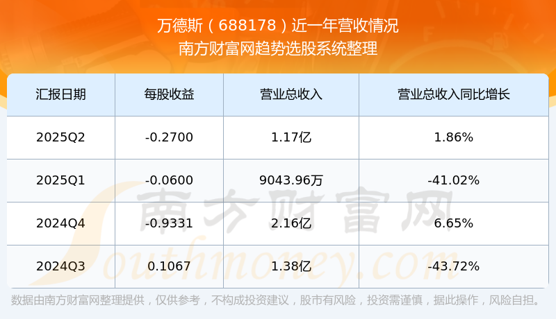 万德斯股票近一年营收情况如下表: