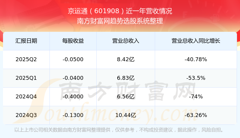 京运通发布2025年第二季度财报。实现总营收8.42亿元,同比增长-40.78%;扣非净利润同比增长82.77%至-1.15亿元。