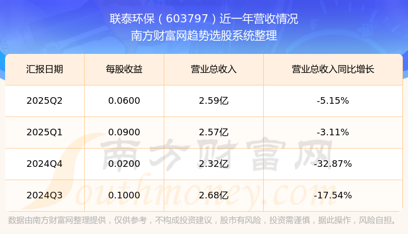 联泰环保2025年第二季度报告显示,公司实现主营业务收入2.59亿元,较去年同期增长-5.15%;归属于母公司股东的净利润为3057.19万元,同比增长-42.87%;扣除非经常性损益后的净利润为3060.24万元,同比增长-40.81%。