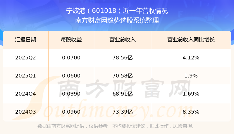 于2025年第二季度,宁波港披露了其业绩表现,其中主营业务收入78.56亿元,相较于去年同期4.12%。此外,公司归属于母公司的净利润为14.22亿元,同比增长了28.37%。在扣除所有非经常性损益后,净利润12.11亿元,同比增长13.24%。
