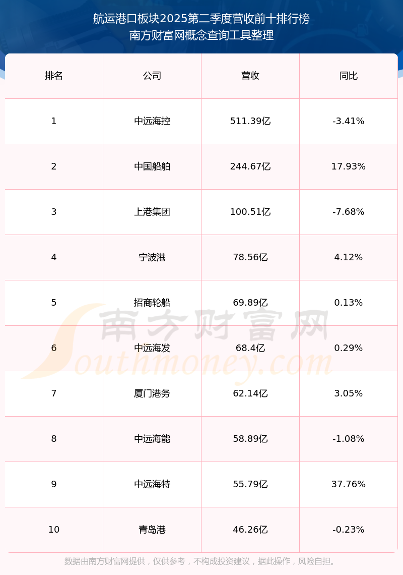 按照开云手机web版登录入口概念查询工具统计,该股所属板块为航运港口板块,该板块共有41只股票,宁波港2025第二季度营收在该板块中排名为第4名,该板块2025第二季度营收排名前十的股票如下表: