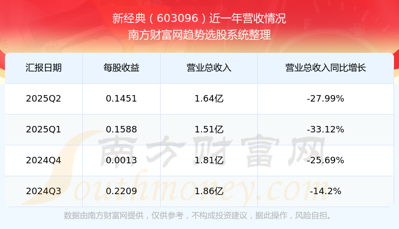 新经典发布2025年第二季度财报。实现总营收1.64亿元,同比增长-27.99%;扣非净利润同比增长-47.55%至2109.55万元。