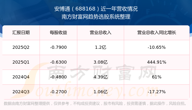 2025年第二季度,安博通营收同比-10.65%,净利润同比-129.3%。