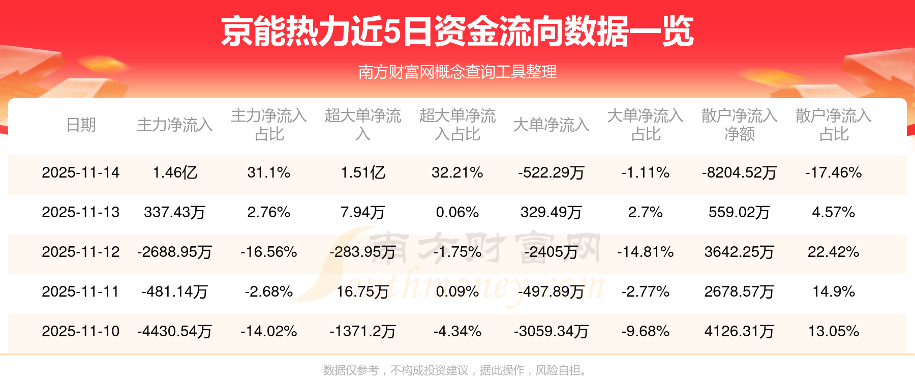 11月14日该股主力净流入1.46亿元,超大单净流入1.51亿元,大单净流出522.29万元,中单净流出6414.24万元,散户净流出8204.52万元。