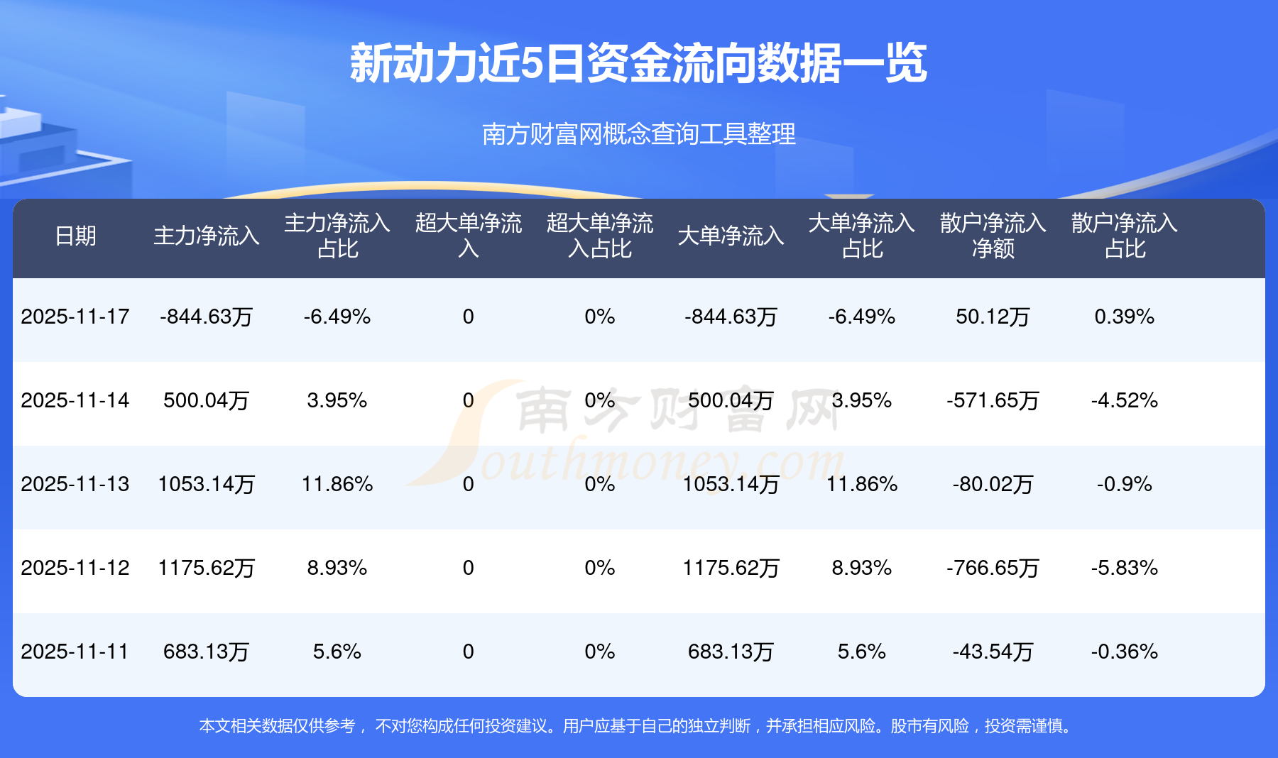 11月17日消息,ST新动力资金净流出844.63万元,换手率6.48%,成交金额1.3亿元。