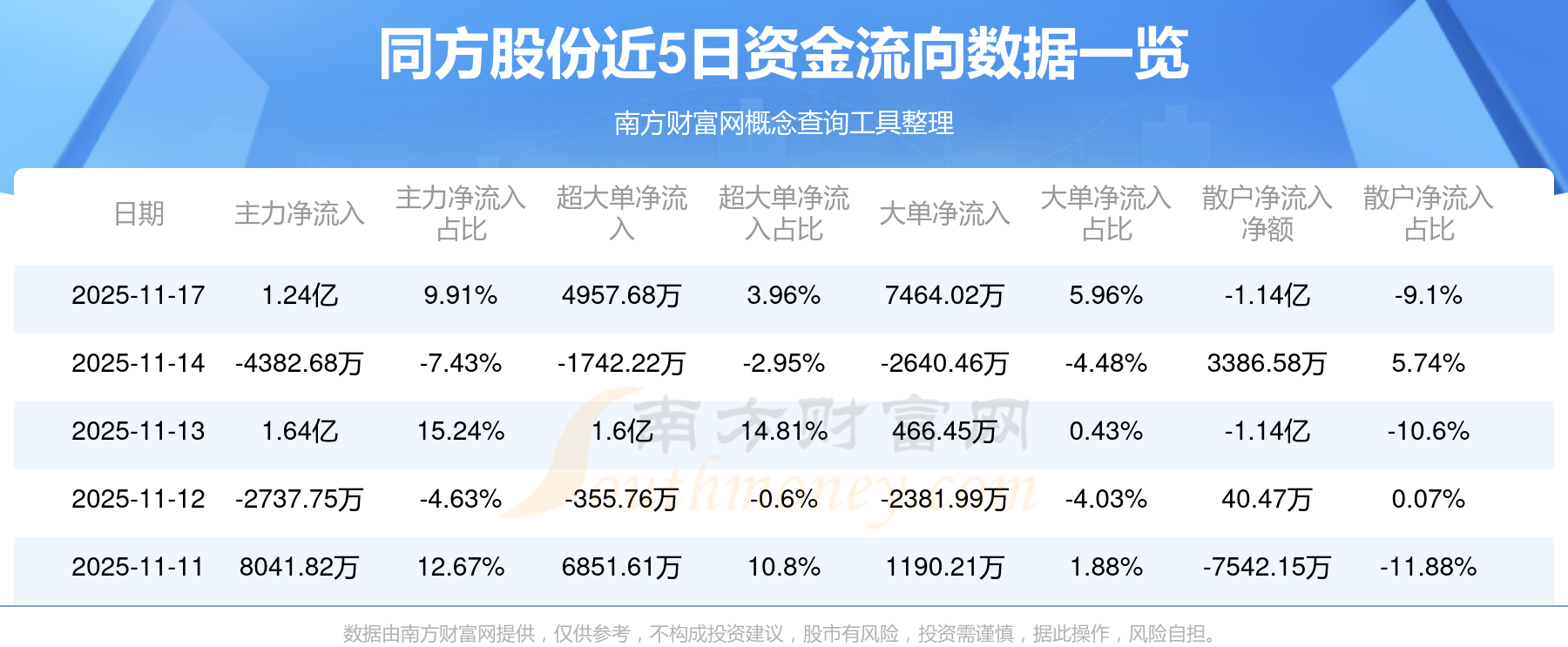 11月17日消息,同方股份主力资金净流入1.24亿元,超大单资金净流入4957.68万元,散户资金净流出1.14亿元。