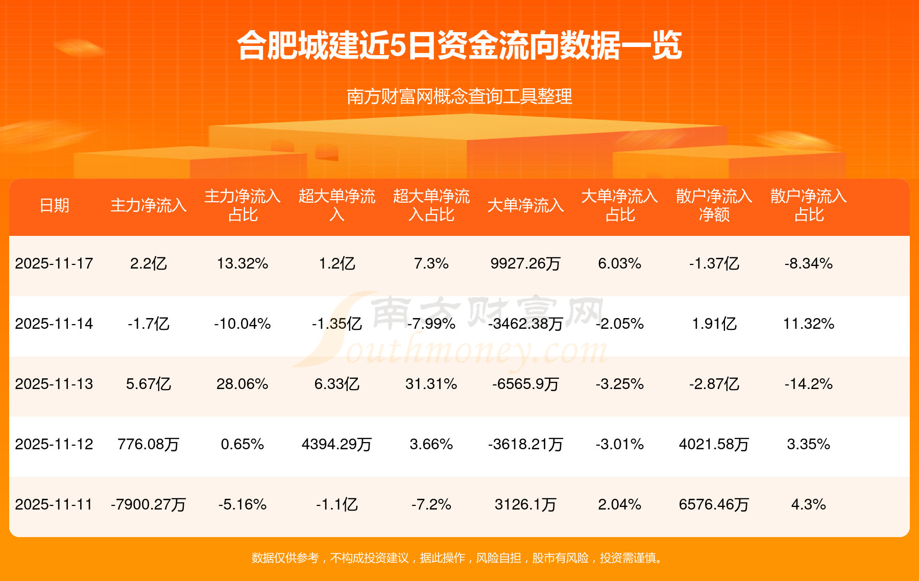 11月7日开盘最新消息,合肥城建今年来上涨45.85% 。