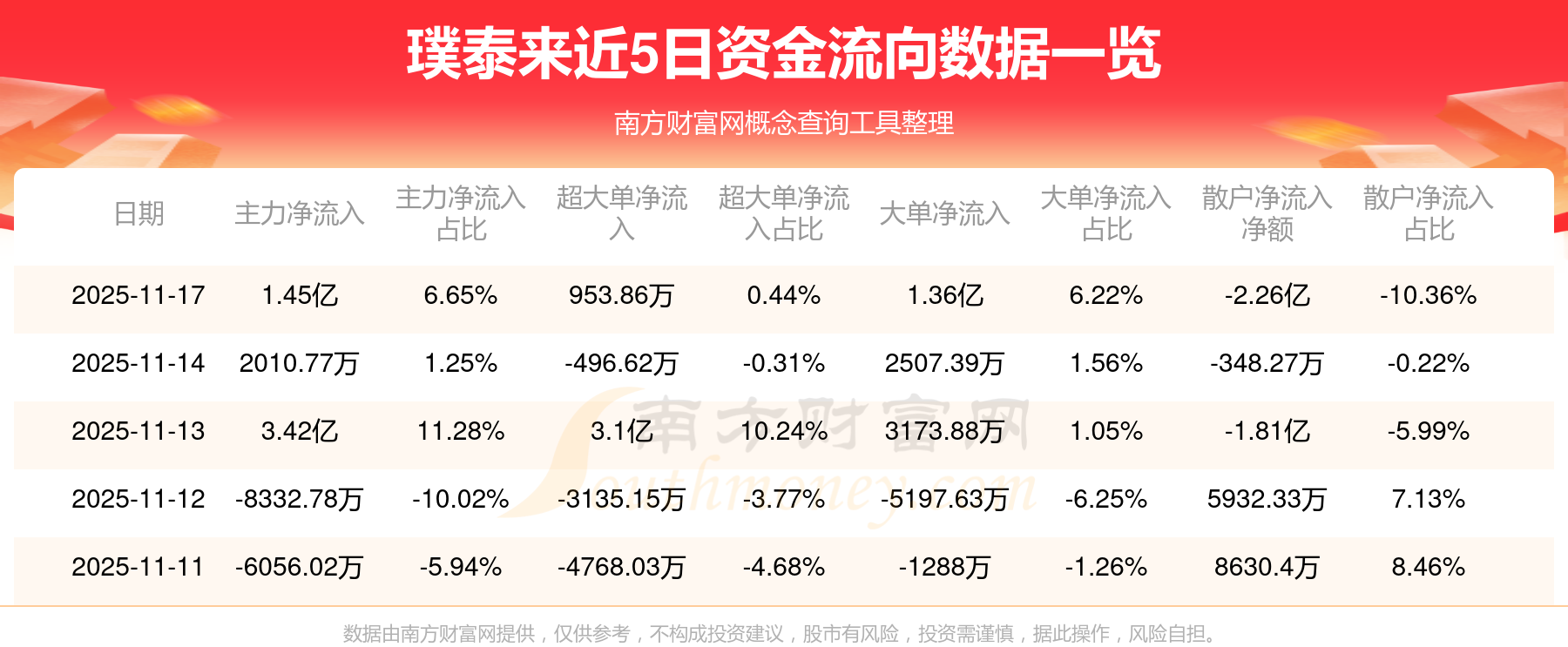 近5日资金流向一览见下表: