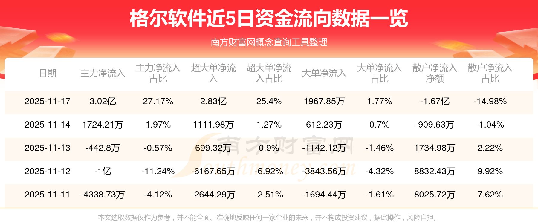 资金流向数据方面,11月17日主力资金净流流入3.02亿元,超大单资金净流入2.83亿元,大单资金净流入1967.85万元,散户资金净流出1.67亿元。
