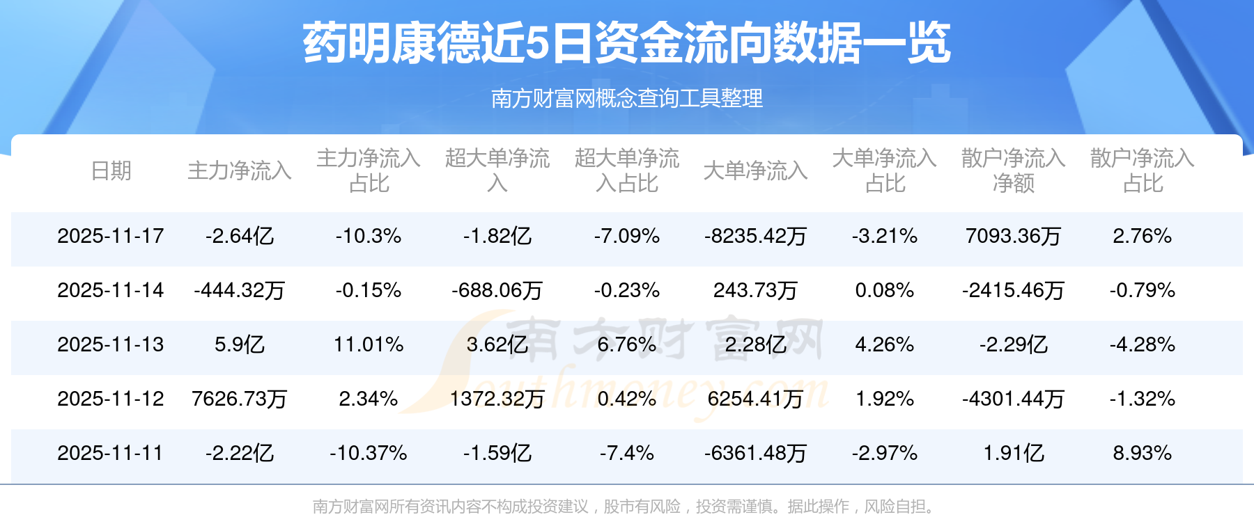 11月17日该股主力资金净流出2.64亿元,超大单资金净流出1.82亿元,大单资金净流出8235.42万元,中单资金净流入1.93亿元,散户资金净流入7093.36万元。
