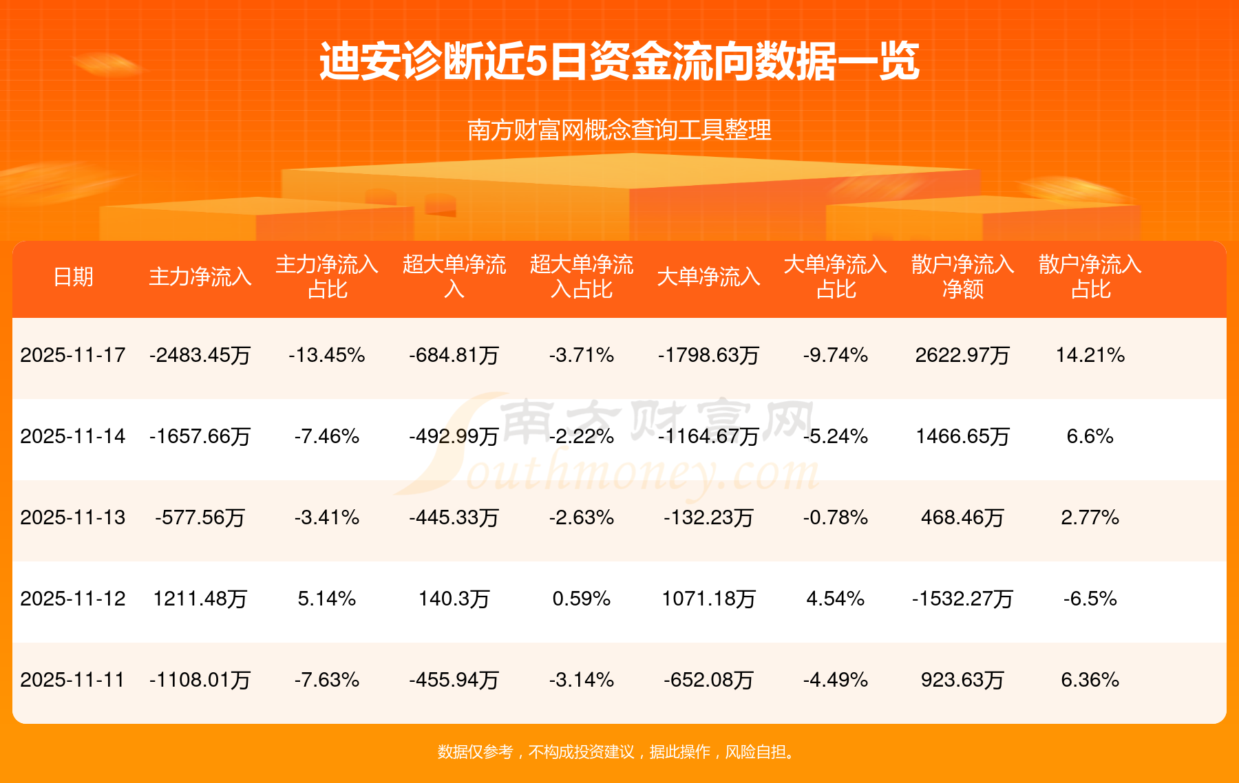 资金流向数据方面,11月17日主力资金净流流出2483.45万元,超大单资金净流出684.81万元,大单资金净流出1798.63万元,散户资金净流入2622.97万元。