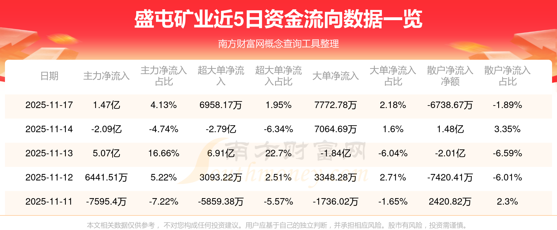11月17日消息,盛屯矿业主力净流入1.47亿元,超大单净流入6958.17万元,散户净流出6738.67万元。