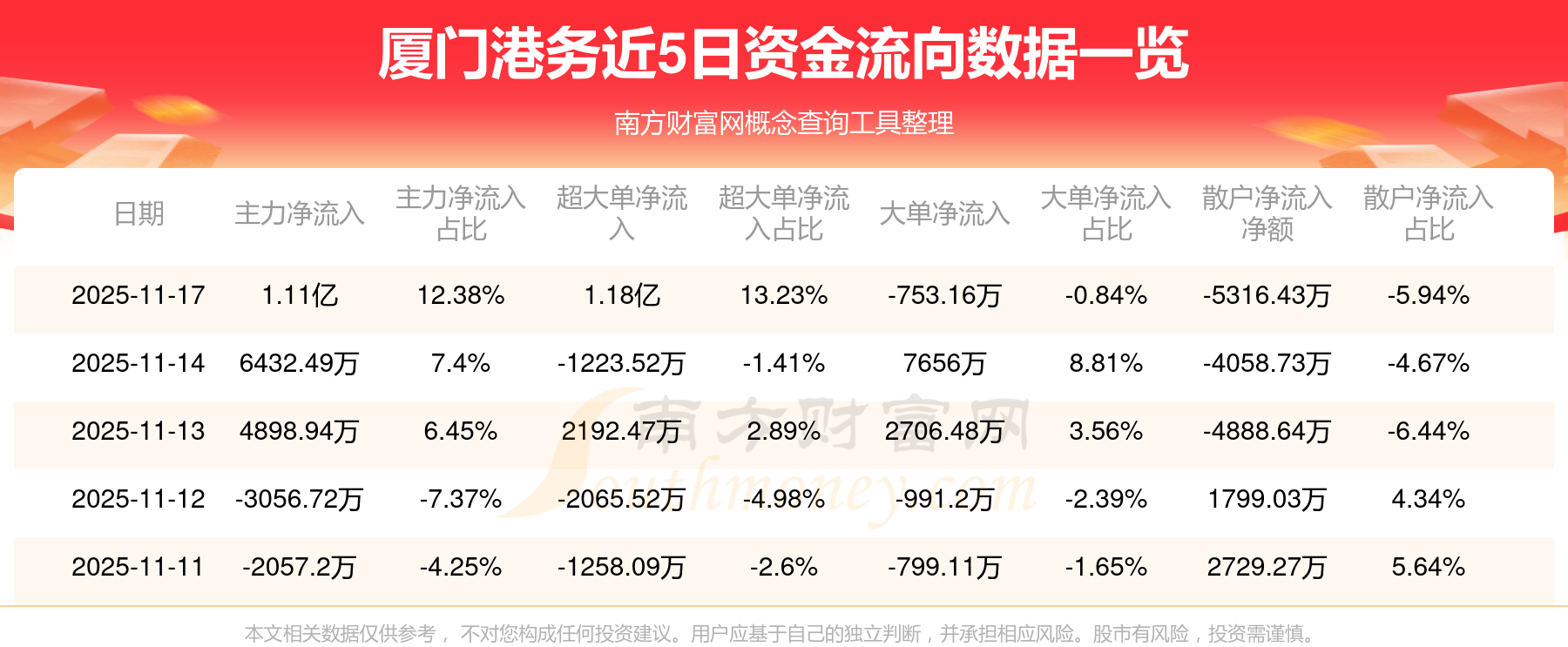 11月17日该股主力净入1.11亿元,其中资金流入方面:超大单净入2.16亿元,大单净入2.32亿元,中单净入2.47亿元,散户净入1.86亿元;资金流出方面:超大单净出9757.79万元,大单净出2.4亿元,中单净出3.05亿元,散户净出2.39亿元。